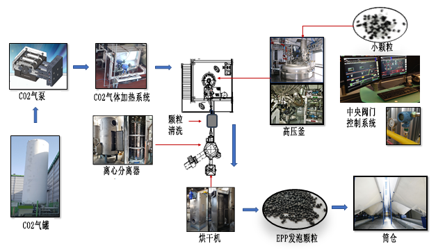 Epp材料(liao)生産(chan)所使(shi)用到(dao)的設(she)備包(bao)括二(er)氧化(hua)碳氣(qi)泵和(he)🔞氣罐(guan)、氣體(ti)加熱(re)系統(tong)、高壓(ya)釜、離(li)心分(fen)離器(qi)、中央(yang)控制(zhi)系統(tong)、烘幹(gan)機、筒(tong)🙉倉等(deng)😘。大緻(zhi)的作(zuo)用可(ke)看上(shang)圖。
