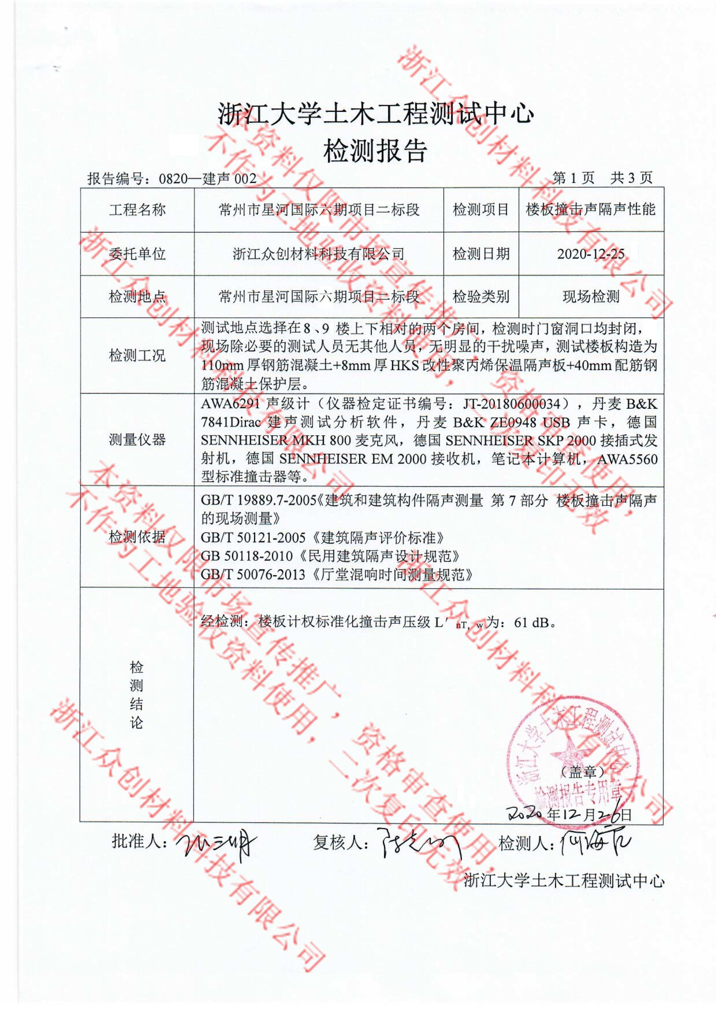 撞擊(ji)聲檢(jian)測報(bao)告